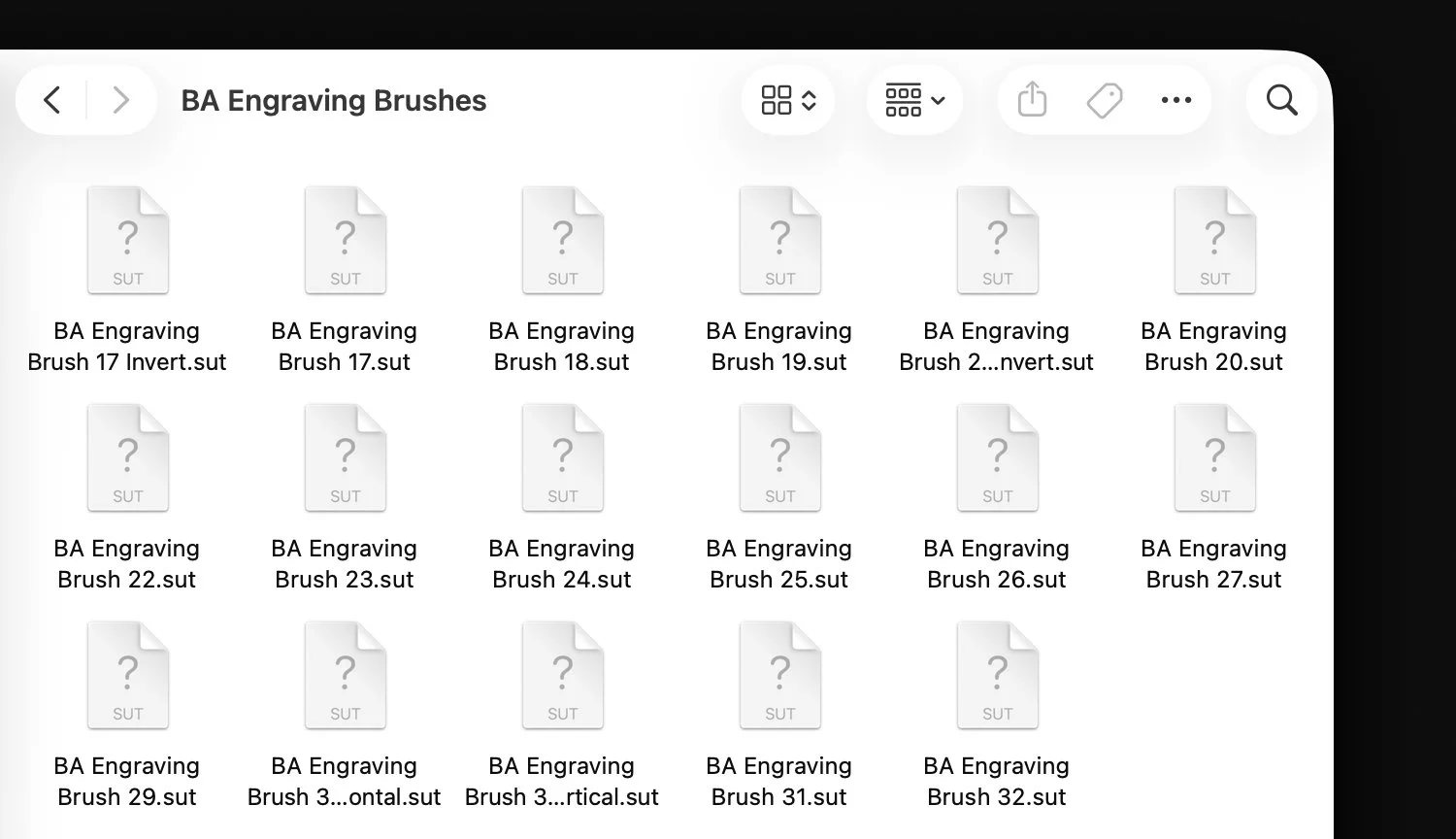 Open the downloaded folder, and browse Product files named BA Line Brush 1 - Diagonal.sut, BA Line Brush 1 - Horizontal.sut, and so on.